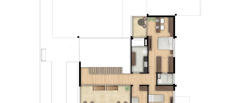 This project was designed to be a holiday house, where the inhabitants could share moments with their friends and family. To attend to the demand of a place that would frequently have guests, we decided to integrate the space as much as possible, making it permeable to what happens at the pool area and suroundings.